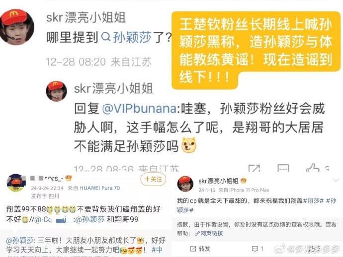 从视频中可以听到,部分王楚钦粉丝有组织地喊涉及孙颖莎的低俗口号(“翔盖99”),这是针对孙颖莎和国家队体能教练王翔的露骨黑称。